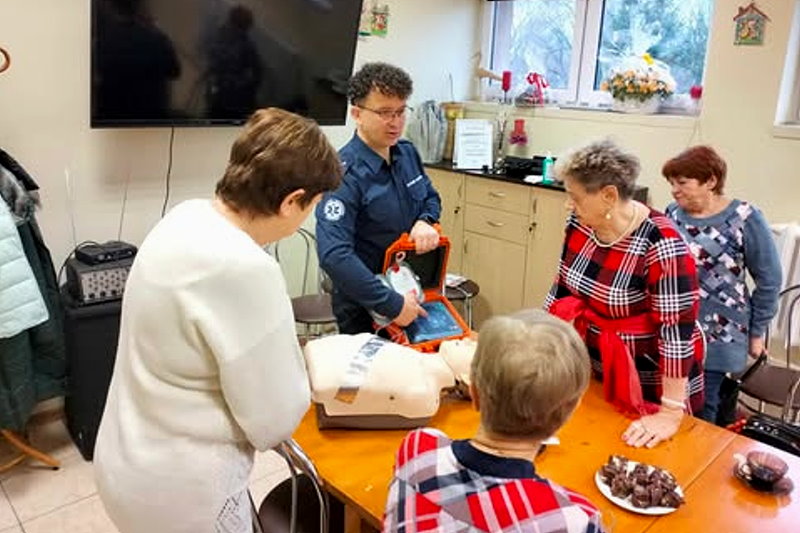 Zdobyta wiedza pomoże Naszym Paniom spokojniej i łatwej opanować zaistniałą sytuację. Uczestniczki zdobędą umiejętność praktycznego udzielania pierwszej pomocy. Dowiedzą się jak przekazać niezbędne informacje podczas powiadamiania służb ratunkowych i co ważne, nauczą się bezpiecznie i prawidłowo obsługiwać automatyczny defibrylator AED.