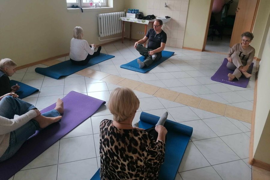 Tematem dzisiejszego wykładu był zdrowy styl życia i znaczenie aktywności fizycznej w wieku Senioralnym. Oprócz rozmów były również ćwiczenia oddechowe i rozciągające.